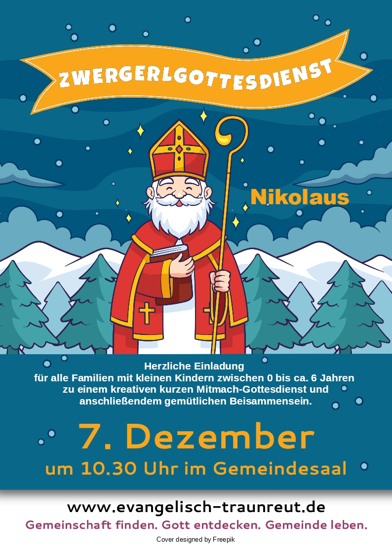 Wir laden alle Familien mit kleinen Kindern zwischen 0 bis ca 6 Jahren zu unserem Zwergerlgottesdienst ein. Wir singen zusammen in familiärer Atmosphäre tolle Kinderlieder und bewegen uns zu Musik und Gebeten. Gemeinsam hören wir immer eine spannende Geschichte, die die Kinder mitgestalten dürfen. Im Anschluss gibt es für alle eine Bastelei oder kreative Idee zum Mitnehmen. Bei einer kleinen Brotzeit lernen wir uns kennen und haben Zeit zum Austausch. Kommt gerne vorbei und feiert mit uns einen kindgerechten und kreativen Gottesdienst für die ganze Familie.